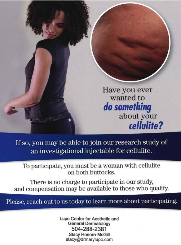 Currently Enrolling for an FDA Study on Cellulite Reduction Image Posted on May 14, 2018 by lupocenter Share this: Share on X (Opens in new window) X Share on Facebook (Opens in new window) Facebook Like Loading... Related