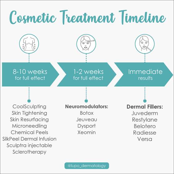 Our non-invasive procedures with lasers and devices usually need to be done in a series to see optimal results. Starting now will give you a more youthful glow or a more sculpted body by the end of the year! Sculptra injectable is another treatment that takes a few weeks to kick in – it works over time to rebuild collagen to reduce the appearance of deep wrinkles and folds.
